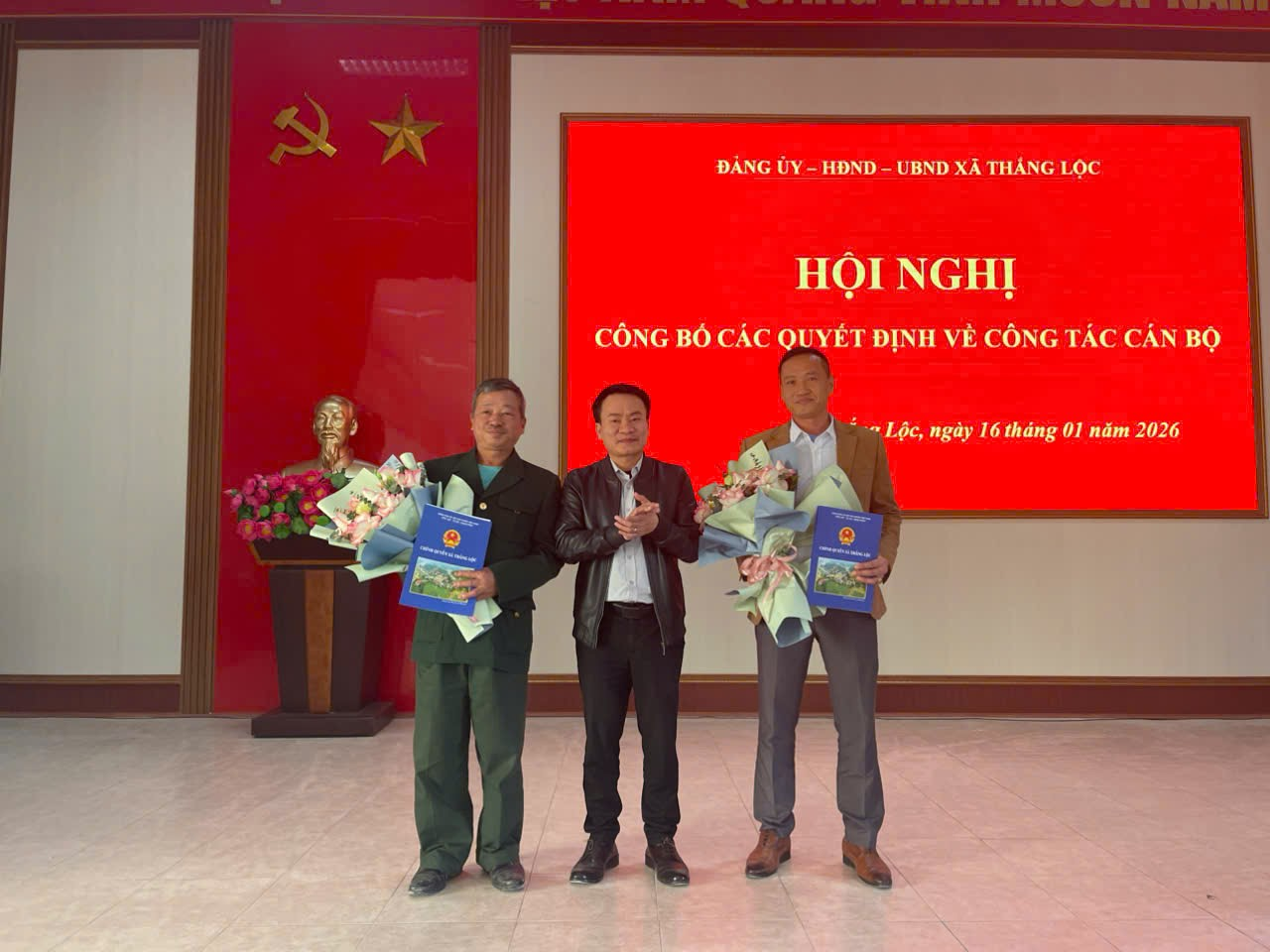 Sáng ngày 16/01/2026, tại Hội trường UBND xã Thắng Lộc đã tổ chức Hội nghị công bố các quyết định về công tác cán bộ. Đây là sự kiện chính trị quan trọng, thể hiện sự quan tâm của Đảng ủy, HĐND, UBND xã trong công tác xây dựng, kiện toàn đội ngũ cán bộ, đáp ứng yêu cầu nhiệm vụ trong giai đoạn mới.