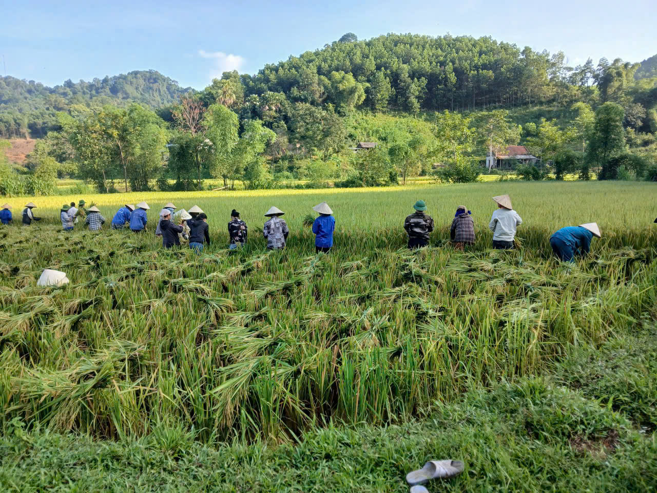Trong quá trình triển khai công tác phòng chống bão, BCH Quân sự xã Thắng Lộc đã nắm bắt được hoàn cảnh khó khăn của 3 hộ gia đình ông Vi Văn ÓT và Ông Vi Văn Tiếp Thôn Tân Thắng. và hộ gia đình ông Lương Văn Mùi tại thôn Xương . Khi bão số 9 sắp đổ bộ, nguy cơ mất trắng vụ lúa của cả ba hộ gia đình là rất cao. Thấy vậy, BCH Quân sự xã Thắng Lộc đã huy động cán bộ, chiến sĩ cùng hơn 40 thành viên tổ bảo vệ an ninh, trật tự cơ sở và một số người dân trong thôn tổ chức gặt lúa giúp ba hộ gia đình. Chỉ trong một thời gian ngắn, hơn 9 sào lúa của 3 hộ gia đình đã được thu hoạch và vận chuyển đến nơi an toàn.