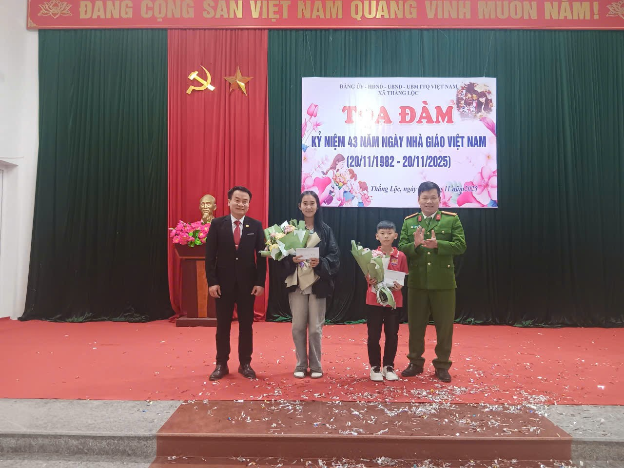 Chiều ngày 18/11, Đảng ủy - HĐND - UBMTTQ Việt Nam xã Thắng Lộc tổ chức tọa đàm kỷ niệm 43 năm ngày nhà giáo Việt Nam (20/11/1982- 20/11/2025),Tham gia buổi tọa đàm có đồng chí Cầm Bá Quyền Phó Bí thư Thường trực Đảng ủy xã đồng chí Lê Văn Hùng Phó Bí thư Đảng ủy Chủ tịch UBND xã cùng các đồng chí trong Ban Thường vụ Đảng ủy và Ban Giám hiệu các trường mầm non, tiểu học, THCS; đại diện Hội Cha mẹ học sinh, các nhà giáo đã nghỉ hưu…